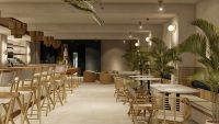 En cuanto al interiorismo, el pub se transforma en un set de película. Teniendo en cuenta ambas ubicaciones, se establecerá un hilo de conexión entre los aspectos que tienen en común: el clima (subtropical seco, mediterráneo) y los colores predominantes en ambos entornos: el color de los cítricos, el mar, la arena y la vegetación.